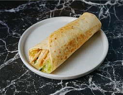 Куринная грудка на гриле, салат айсберг, лук, огурец, пармезан, тортилья.