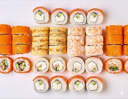 Филадельфия, Калифорния унаги, Фила в икре, Филадельфия унаги, Суши с лососем 2шт, Суши с урем 2шт.(36шт)